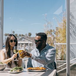 Ambiance is amazing. Try to call ahead to reserve seating by the water. If not, the center lounge area is really nice too (outdoor couches), just bring a sweater cuz it can get chilly from the wind. Evenings are nice because there's a firepit section waterside that is good for group hangouts. Food is amazing and tasty. I always get their Bloody Mary because they hook it up with a variety of garnishes including bacon olives and pepperoncini